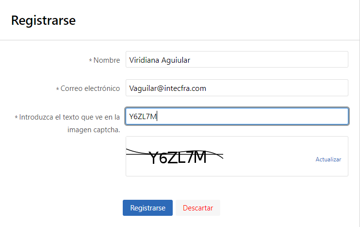 - Ingresar los datos solicitados y click en “Registrarse”.