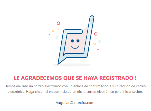 - Al finalizar se enviará un correo a la dirección registrada con un enlace para confirmar el registro.