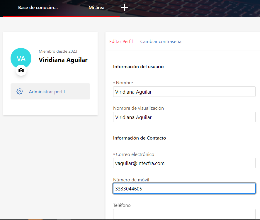 - Se abrirá la página en el perfil de usuario, llenar los datos faltantes y dar click en “Guardar”.