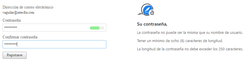 - Al dar click en el vínculo se confirmará la cuenta y solicitará establecer una contraseña, después de ingresarla dar click en “Registrarse”.